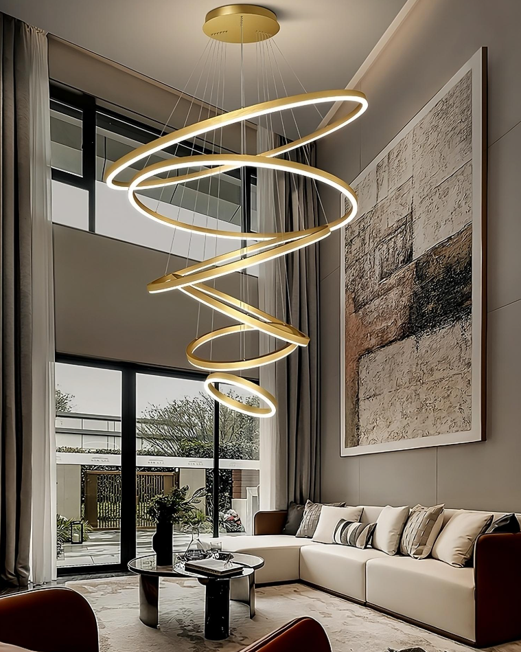 This round LED chandelier features a minimalist modern design, ideal for living rooms, dining areas, and offices. It provides even, comfortable lighting with a softly diffused glow while maintaining energy-efficient LED performance.