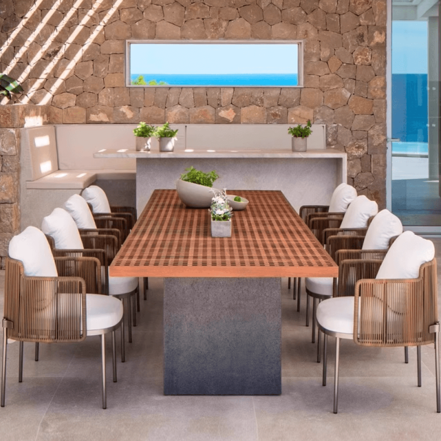 Create an elegant alfresco dining experience with The Exclusive Home’s woven and rattan dining collections. Expertly crafted from premium synthetic rattan, each setting is designed to withstand outdoor conditions, offering weather resistance, UV stability, and effortless maintenance ideal for patios, terraces, and garden environments.