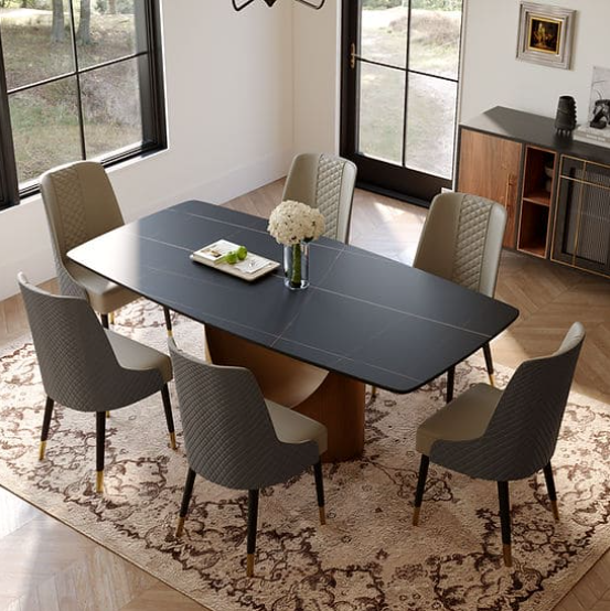 This striking dining table marries contemporary design with practical functionality. Its distinctive U-shaped base creates a bold architectural statement, offering compelling visual contrast against the clean rectangular surface. The geometric interplay between curved support and linear top delivers sophisticated style suitable for both refined entertaining and everyday dining. Engineered for stability and longevity, the generous tabletop accommodates multiple guests with ease, making it an ideal centerpiece for gatherings where comfort and conversation flow naturally.