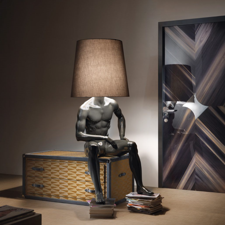 Resting on stacked cases, the figure feels domestic and human unposed, unhurried. Light becomes a companion rather than a statement, illuminating not just the room, but the quiet moments within it.